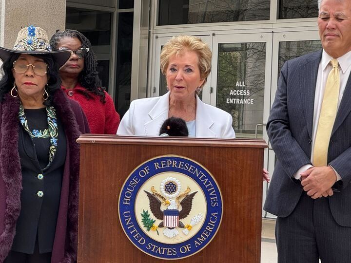 WASHINGTON — A press conference by a dozen U.S. House Democrats outside the U.S. Department of Education took an unusual turn on Wednesday when the subject of their criticism — Education Secretary Linda McMahon — unexpectedly joined them.