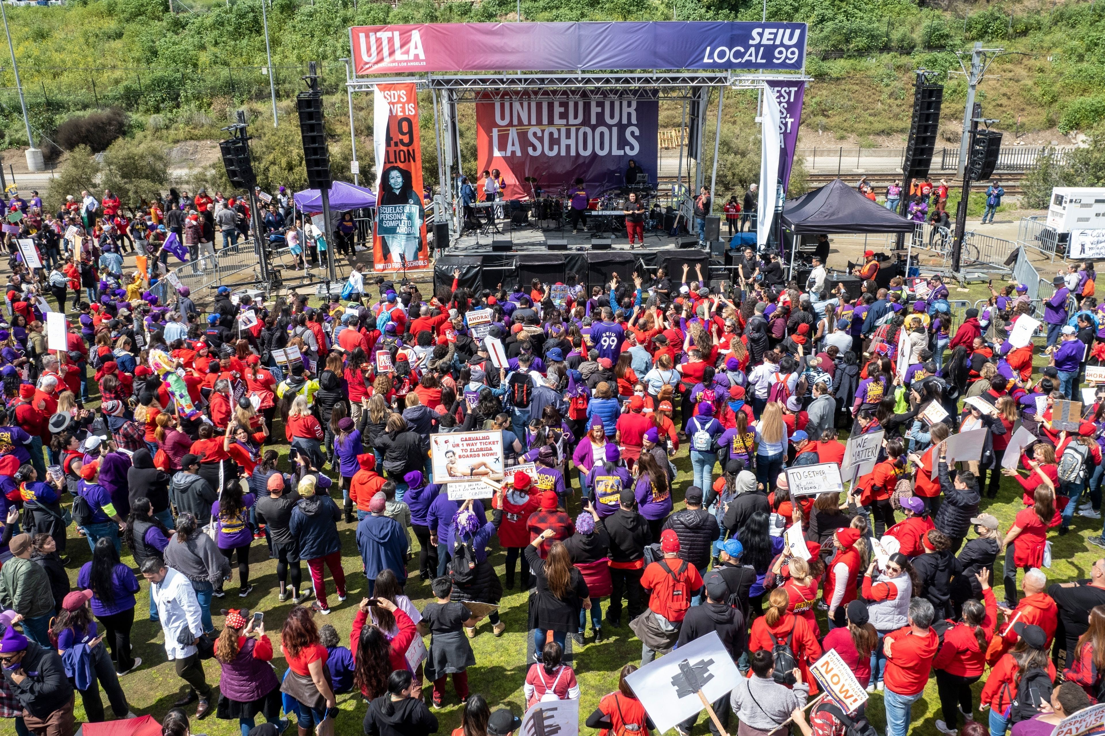 Tens of thousands of Los Angeles teachers went on strike March 21-23, 2023, for the first time in four years, shutting down the nation’s second-largest school district for three rain-soaked days. But this time the United Teachers of Los Angeles (UTLA) did not walk out in order to demand better working conditions for educators. Rather, they were engaging in a remarkable act of solidarity with their lesser-paid colleagues—the Los Angeles Unified School District (LAUSD)'s support staff of about 30,000 people who are in their own union, Service Employees International Union (SEIU) Local 99. It was the first time that the two unions—the largest two in Los Angeles—went on strike together.