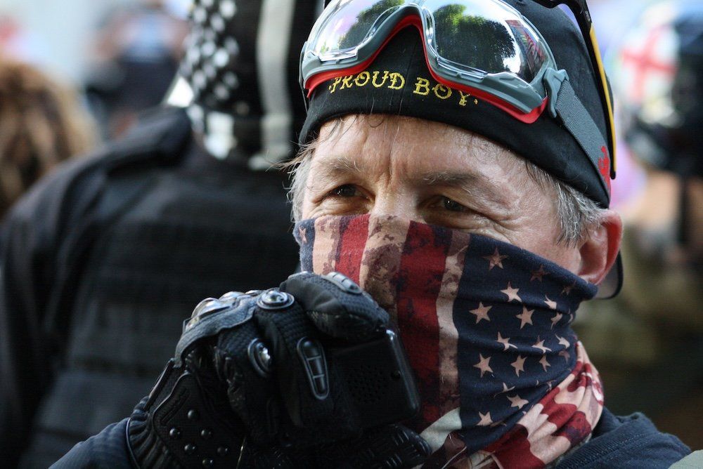 Far-right groups including the Proud Boys and Boogaloo Boys join a "Back the Blue" rally in Portland, Oregon on August 22, 2020 (Image: Shutterstock)