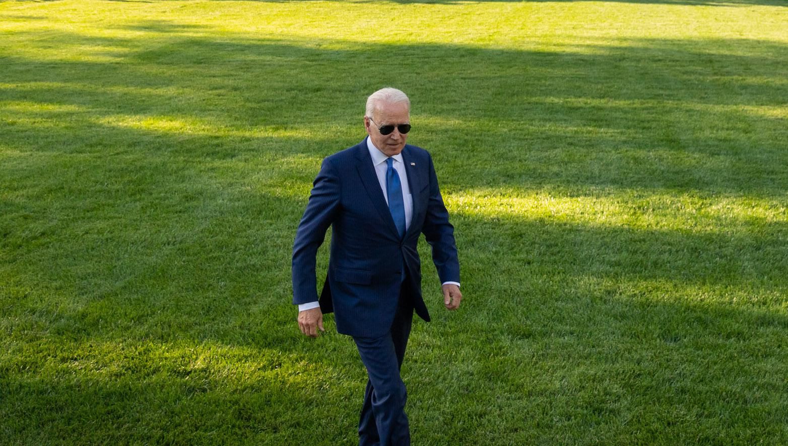 President Joe Biden prepares to board Marine One on the South Lawn of the White House, Friday, June 25, 2021, en route to Camp David in Thurmont, Maryland.