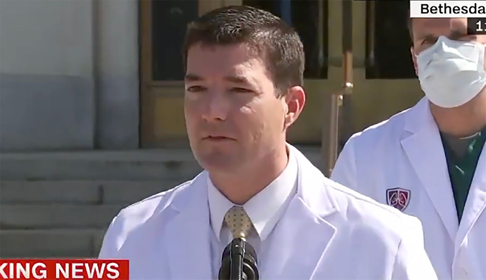 White House physician Dr. Sean Conley and members of Donald Trump's Walter Reed-based medical team held another press conference today to describe Trump's medical condition and, once again, it was anything but informative. Conley did attempt to explain his refusal yesterday to admit that Trump has had episodes in which he was given oxygen—implausibly suggesting he "didn't want to give any information that might steer the course of illness in another direction."