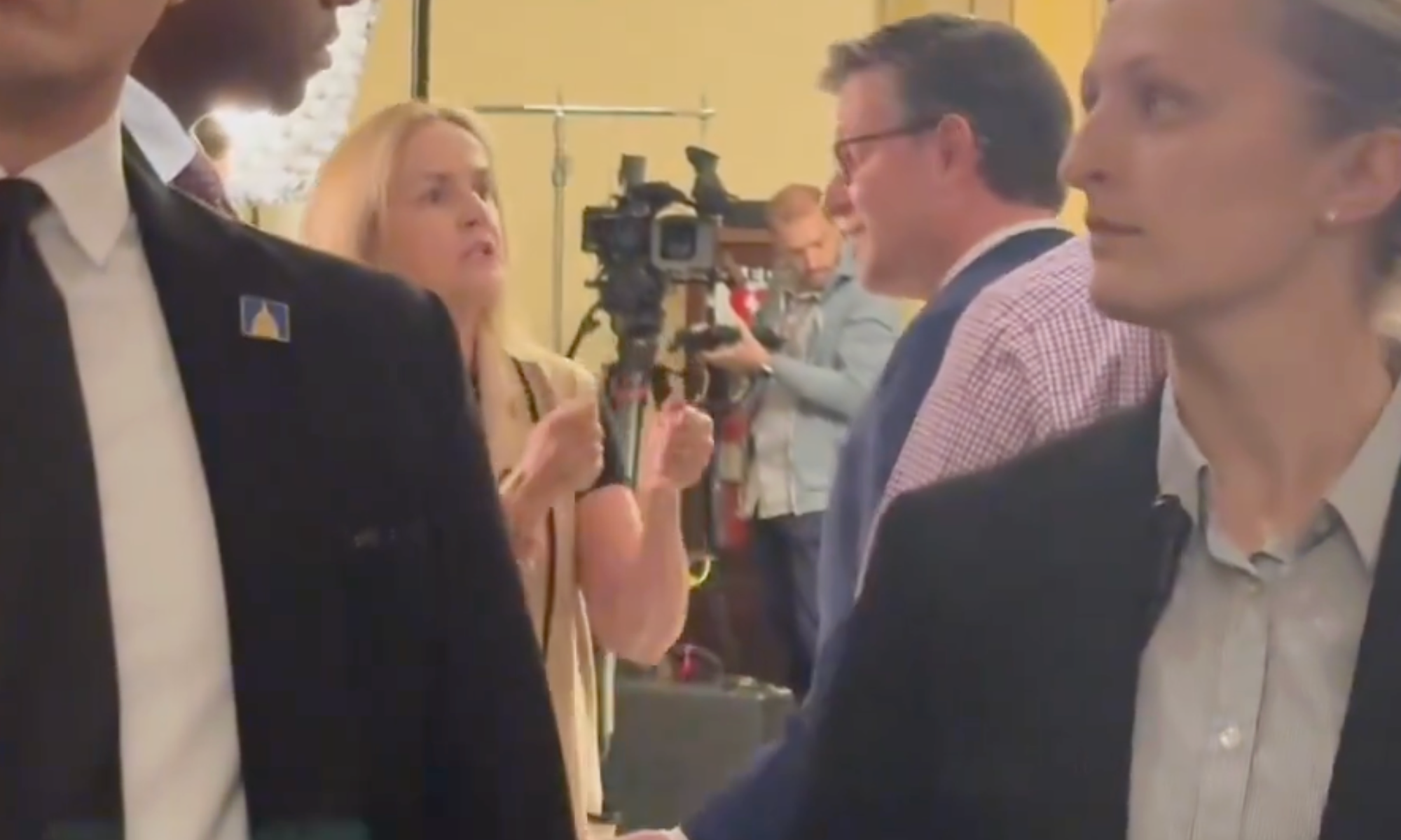 Rep. Madeleine Dean (D-Pa.) and House Speaker Mike Johnson (R-La.) on September 30, 2025 (Image: Screengrab via @Manukraju / X)