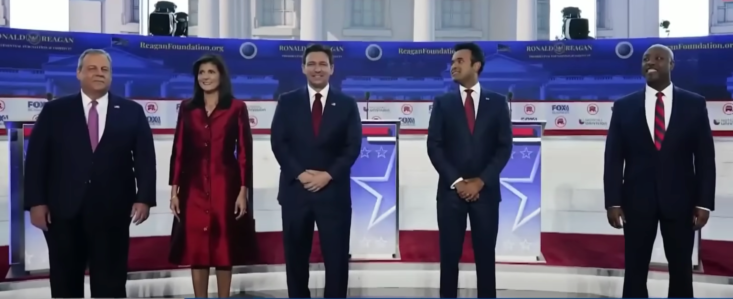 NBC's partnership with Salem was reportedly foisted upon the network by the Republican National Committee when it initially organized the debate, though the Post reports that the network will maintain "full editorial control" over the questions candidates will be asked. Tonight's debate stage will feature former Governor Chris Christie (R-New Jersey), Governor Ron DeSantis (R-Florida), former UN Ambassador Nikki Haley, businessman Vivek Ramaswamy, and Senator Tim Scott (R-South Carolina). Donald Trump — the heavy frontrunner — will not be in attendance.