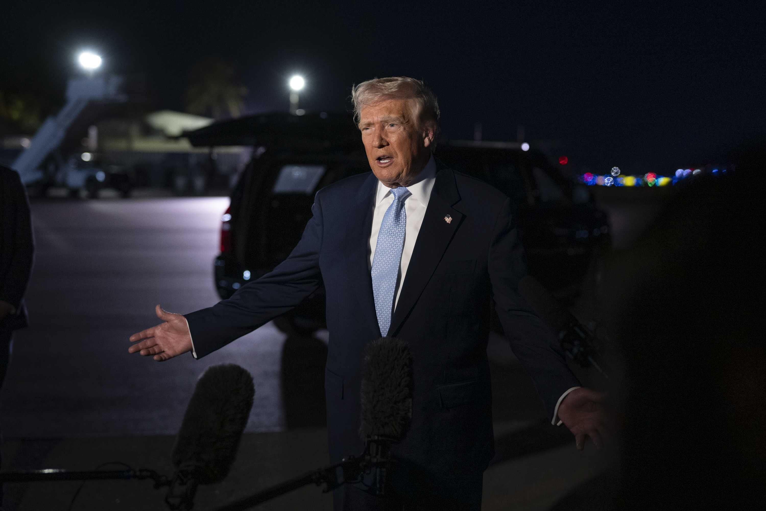 President Donald Trump speaks to the press before boarding Air Force One at Palm Beach International Airport in West Palm Beach, Florida on Sunday, November 16, 2025, en route Joint Base Andrews, Maryland (Official White House Photo by Molly Riley)