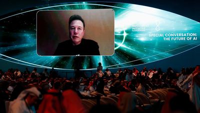 Tesla CEO and X owner Elon Musk appears on a screen as he virtually attends the Future Investment Initiative (FII) in Riyadh, Saudi Arabia October 29, 2024. REUTERS/Hamad I Mohammed