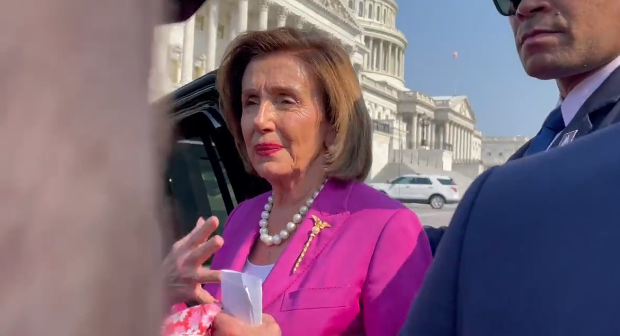 NBC News reporter Frank Thorp told Pelosi, "Leader McCarthy says it's against the science" — and before getting into the vehicle, a frustrated Pelosi responded, "He's such a moron."