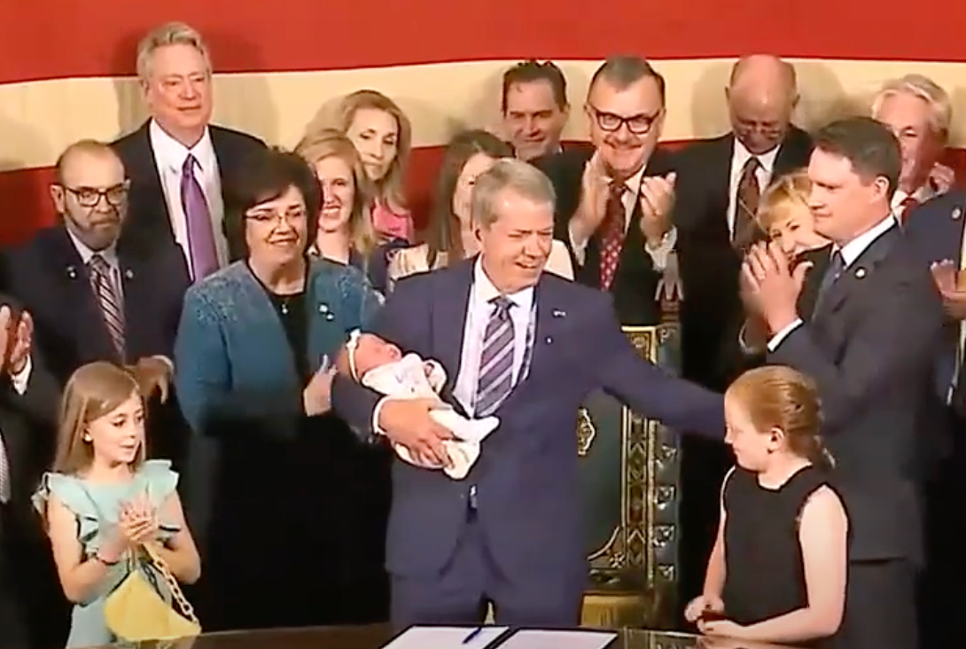 Pillen spoke at a press conference immediately following his consequential act, which the governor performed while being flanked by two girls and cradling an infant swaddled in white.