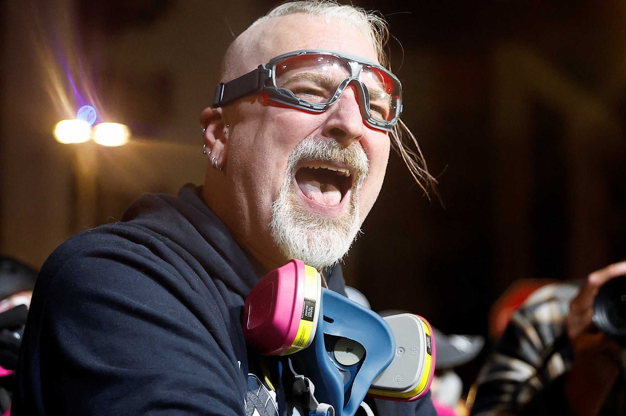 An Iraq war veteran confronts federal agents in Portland, Oregon, March 28, 2026. REUTERS/John Rudoff