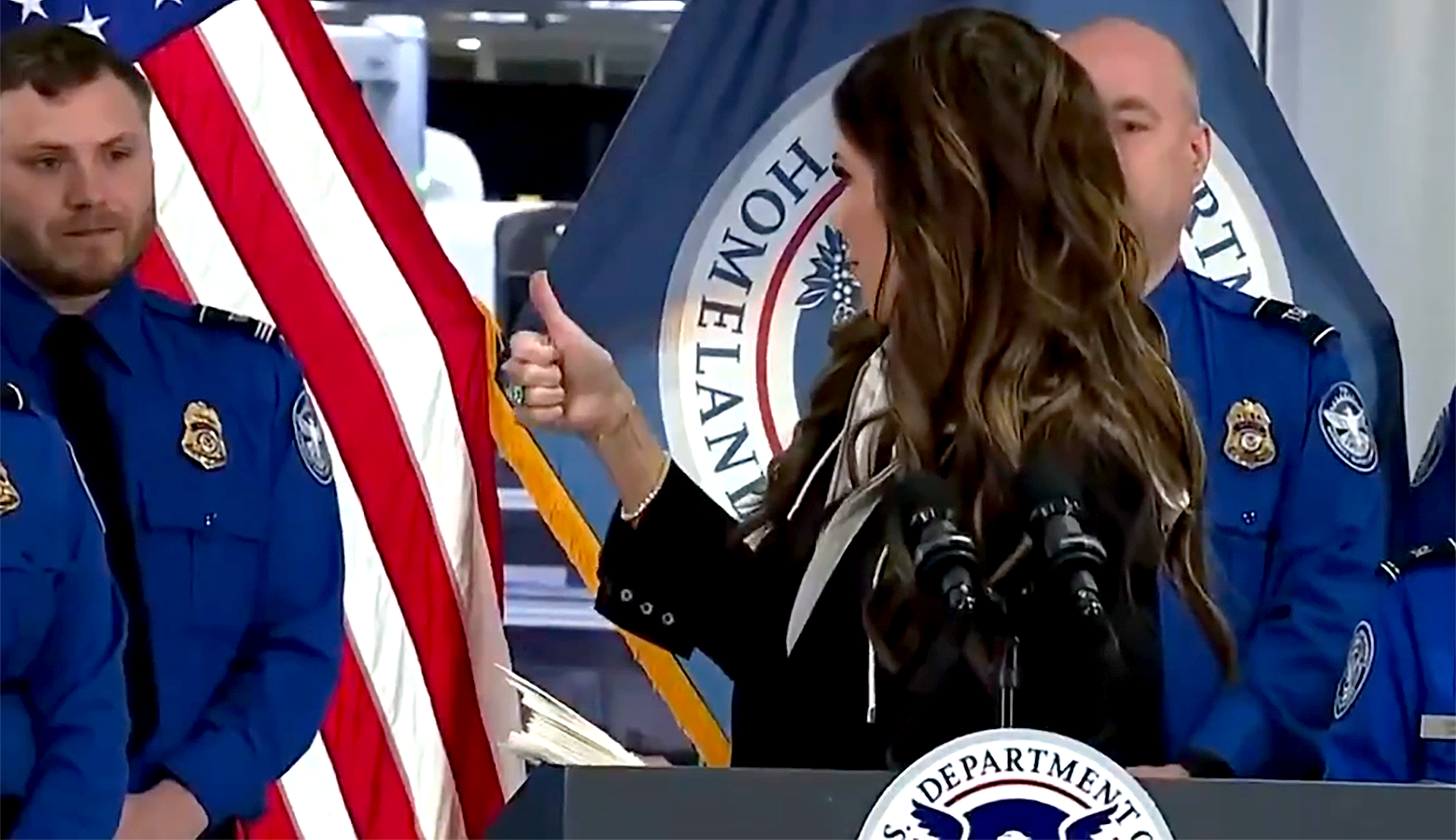 Noem was purportedly giving $10,000 bonuses to 29 TSA agents who worked without pay during the government shutdown. As the Beast reports, the TSA bonuses, “like the bonuses given to air traffic controllers … were only offered to certain employees.”