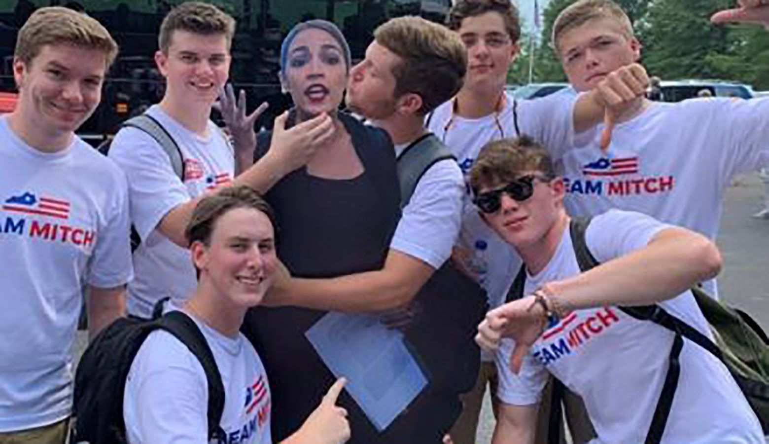 That was Rep. Alexandria Ocasio-Cortez's response on Monday to a photo of several young men in "Team Mitch" t-shirts kissing, groping, and choking a cardboard cutout of the New York congresswoman.