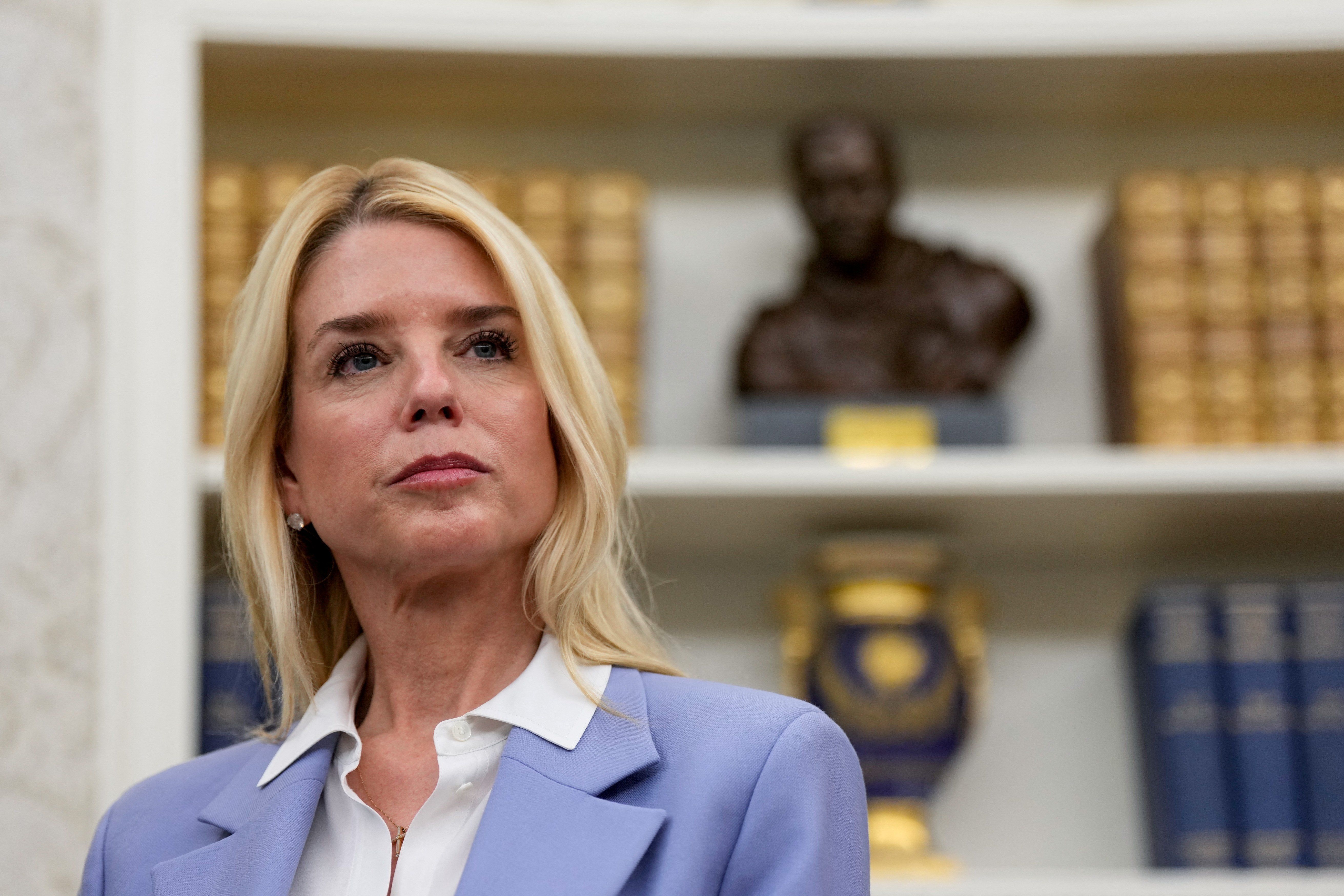 U.S. Attorney General Pam Bondi looks on during a swearing-in ceremony of Special Envoy Steve Witkoff in the Oval Office at the White House in Washington, D.C., U.S., May 6, 2025.