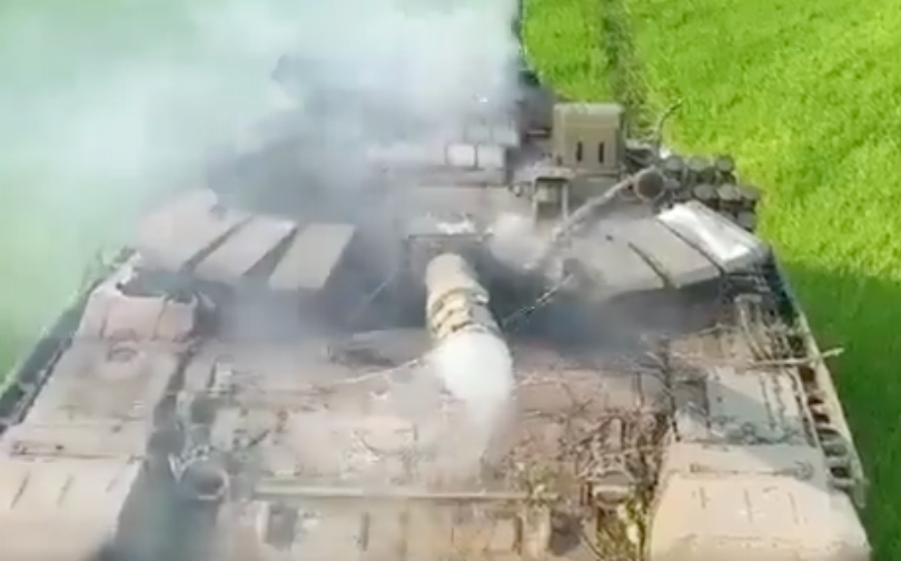 "This is a Russian tank. Like the Pacific salmon, Russian tanks migrate long distances from the abyss of Russia to end their lives in Ukraine's beautiful fields. Driven by an evolutionary desire to end their life somewhere better, after reaching Ukraine, all species of Russian tank die," the narrator states to footage of blown up, smoldering tanks.