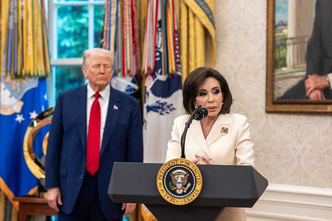 U.S. President Donald Trump with Jeanine Pirro on Wednesday, May 28, 2025, in the White House Oval Office. (Official White House Photo by Joyce N. Boghosian/Flickr)