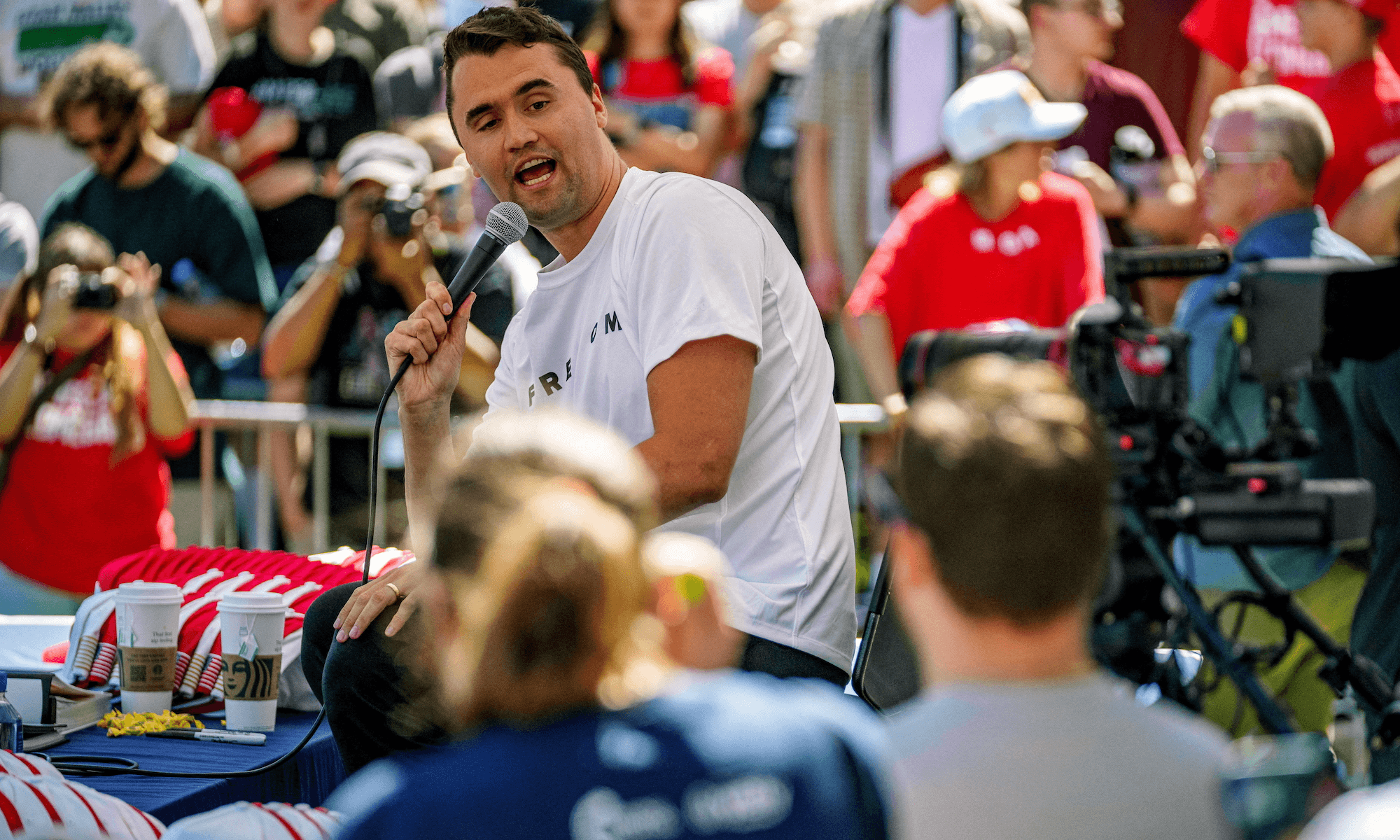 Charlie Kirk appears at Utah Valley University in Orem, Utah in 2025 - Trent Nelson/Reuters
