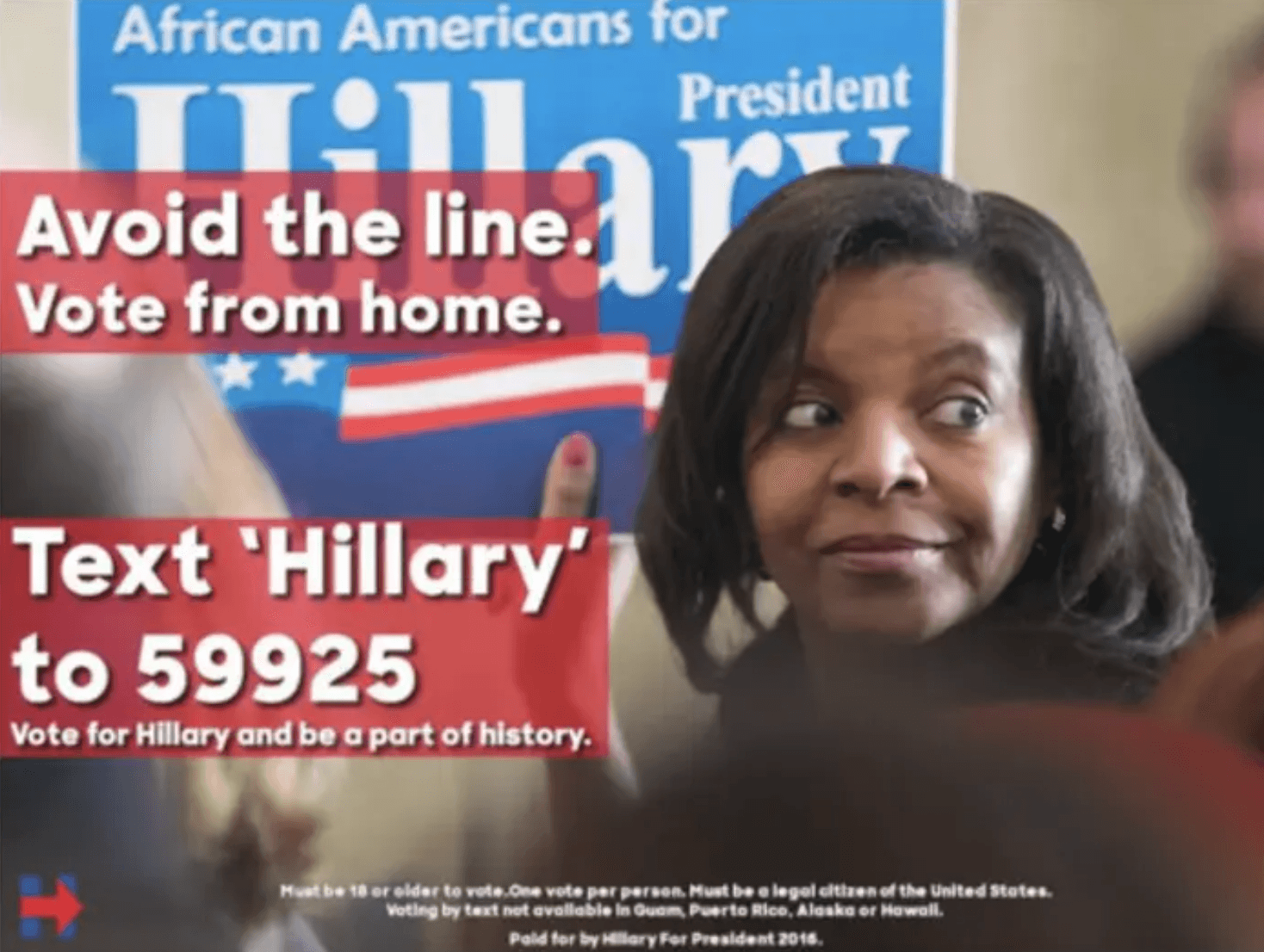 The conspiracy in question stemmed from a series of posts, meant to look like they were from the former Secretary of State and 2016 Democratic presidential nominee, encouraging Black and Latino supporters to vote by text message or through social media, knowing that those votes would not actually be counted. One of those posts showed a Black woman holding a sign, and another post was in Spanish, and included the Clinton campaign logo with fine print attached that read "Hillary for President."