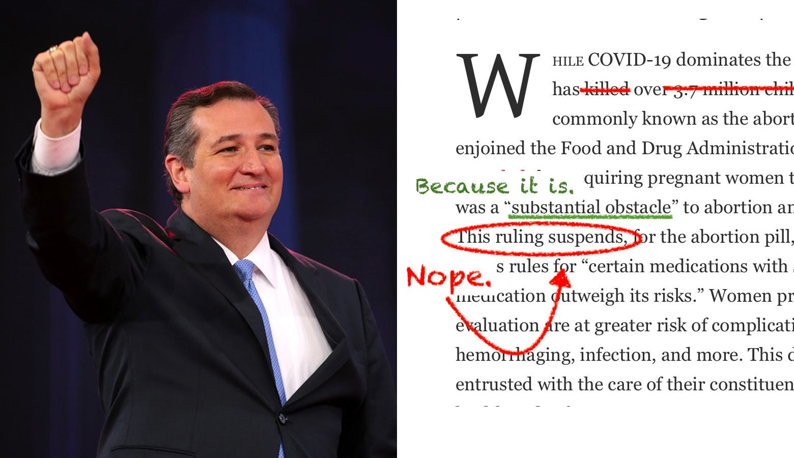 Public health expert offers brutal edits to Ted Cruz's wildly misleading abortion pill screed