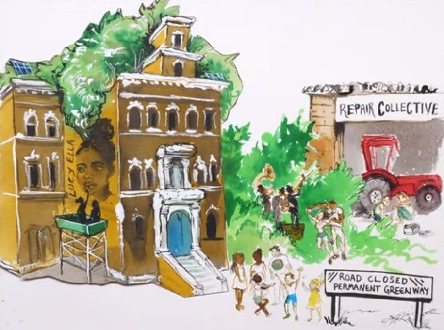 After what seems like an endless parade of dystopias in literature and film, the short film, in which Crabapple illustrates scenes to Rep. Ocasio-Cortez's narration, seems almost shocking in its optimism. Set two decades in the future, it brings to life—or at least, to still life—a world in which the Green New Deal becomes reality. Starting from that basis, it projects the kind of changes that might be expected by 2040, and the kind of world the next generation could inherit.