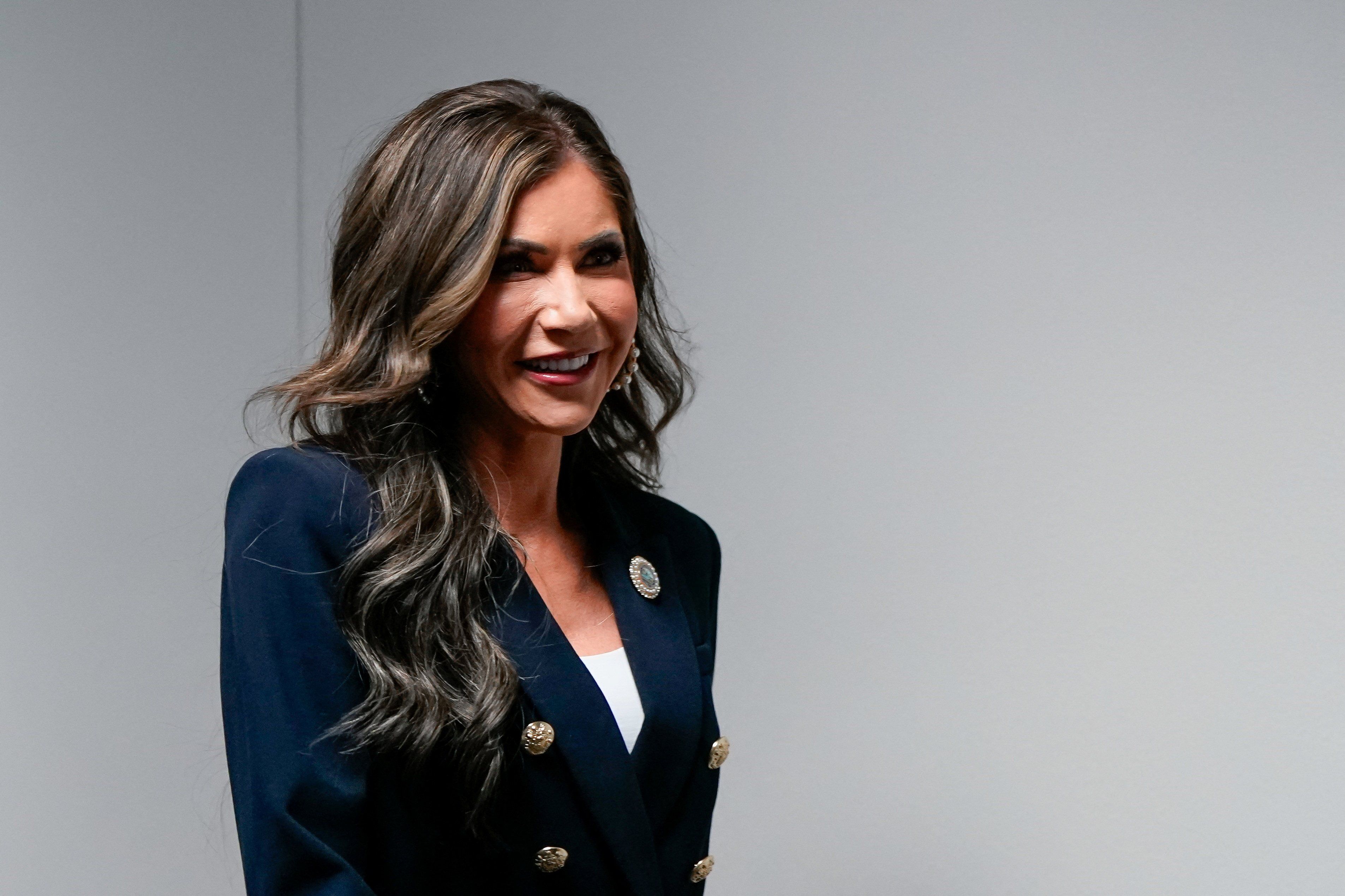 Homeland security secretary nominee Kristi Noem walks through Capitol Hill in Washington, U.S., December 10, 2024. REUTERS/Elizabeth Frantz