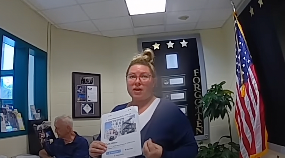 In body cam footage from October 25, which Popular Information journalist Jedd Legum obtained and published to YouTube, Tapley can be seen talking to an officer in the Santa Rosa County Sheriff's Office lobby saying, "The governor says this is child pornography. It's a serious crime...just as serious as if I handed a Playboy to her right now, right here, in front of you," as she points to a girl standing next to her.