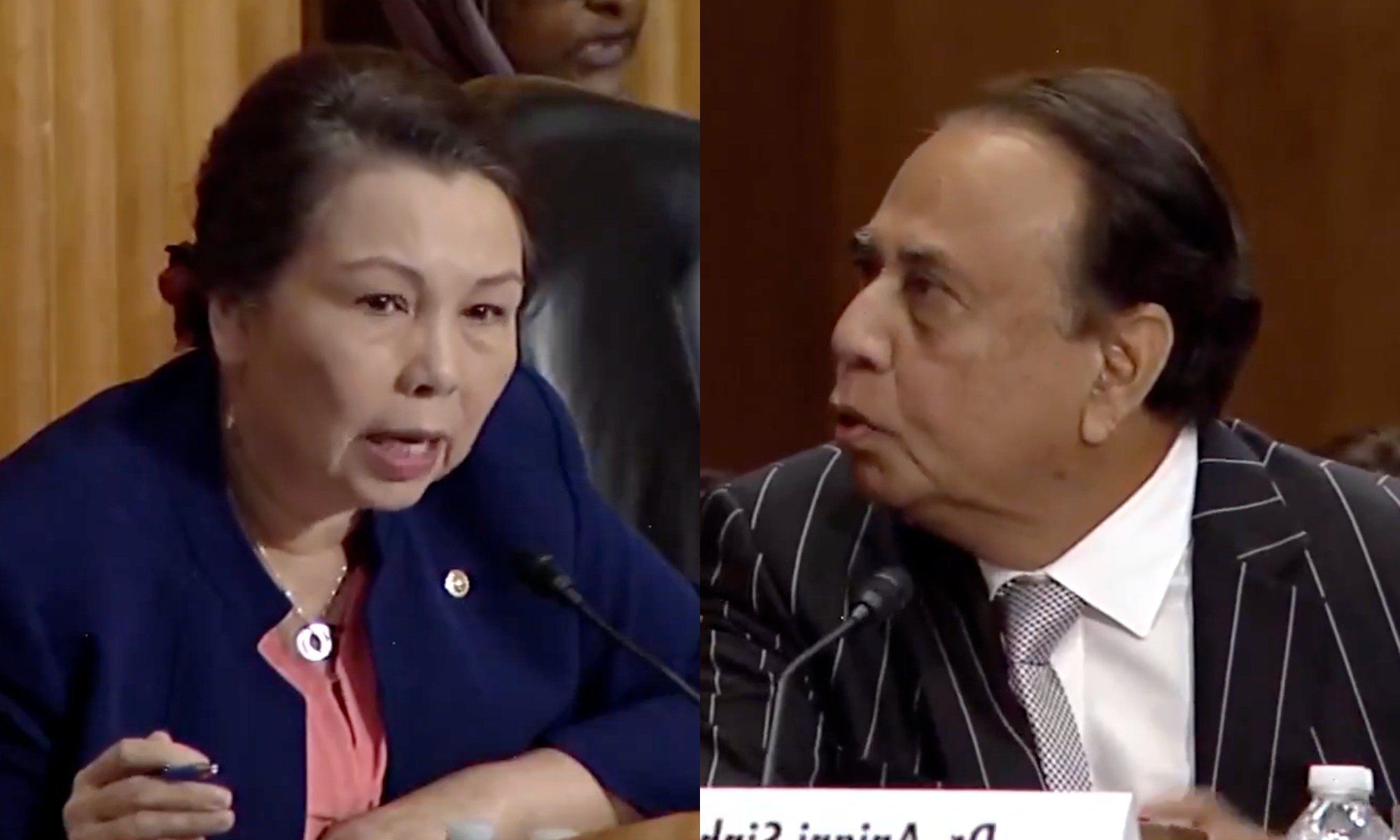 Sen. Tammy Duckworth (D-Ill.) and U.S. Ambassador to Singapore-designate Anjani Sinha on July 9, 2025 (Image: Screengrab via @TheBulwark / X)