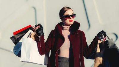 photo of woman holding white and black paper bags