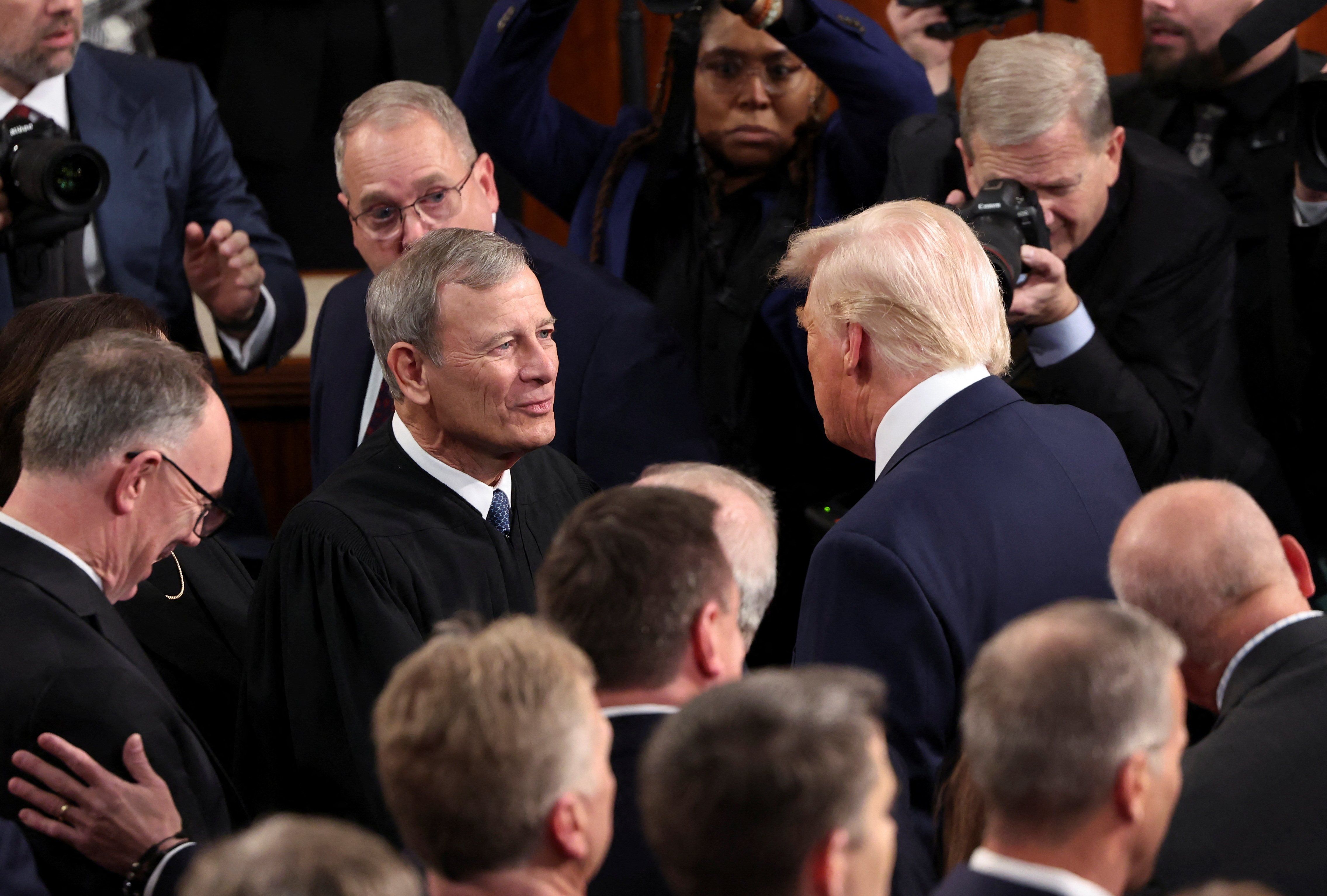 Trump shakes hands with Chief Justice John Roberts (Photo: REUTERS/Kevin Lamarque)