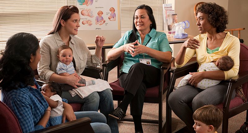 New moms participating in a group discussion with WIC counselor. Creative Commons