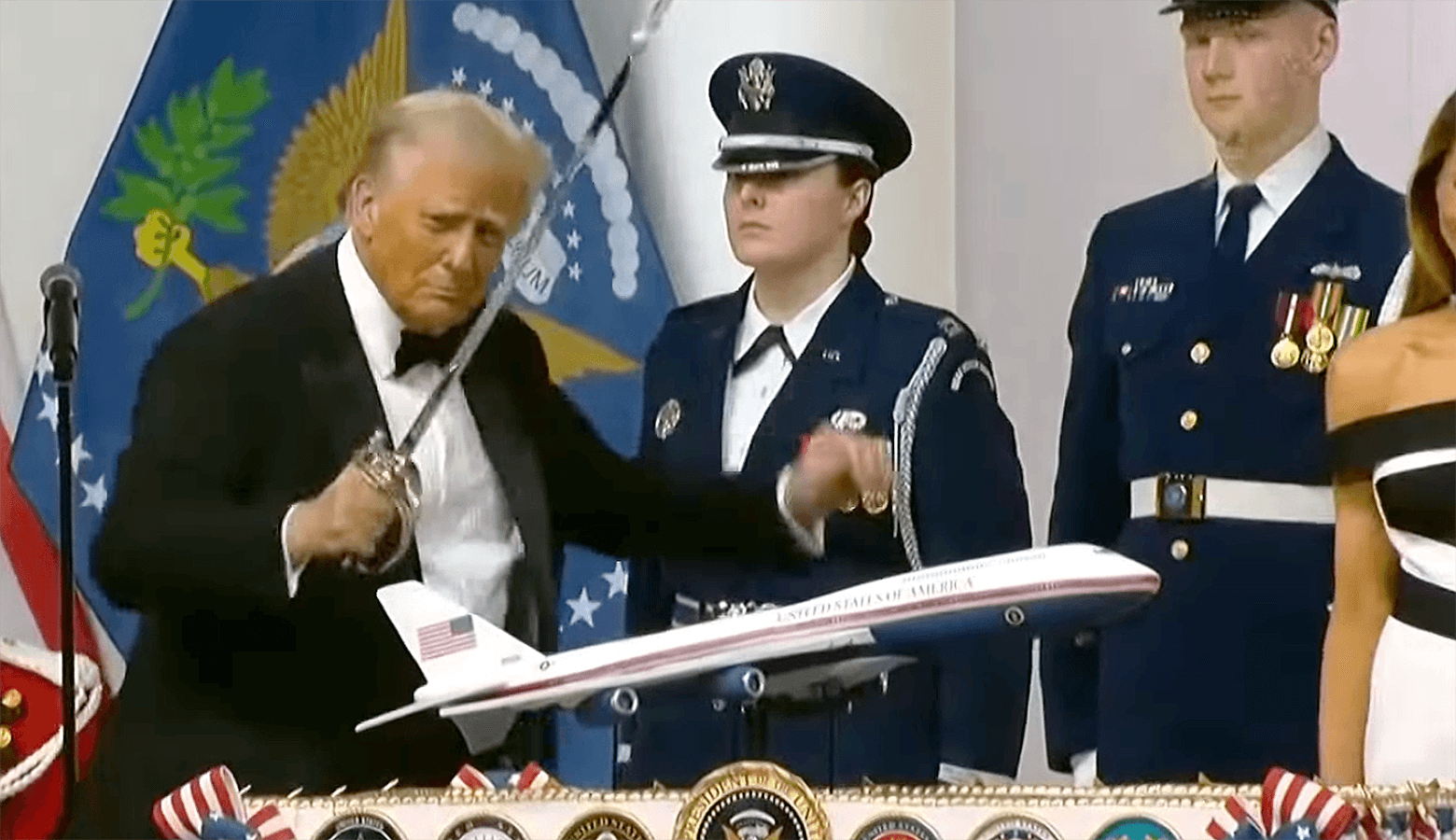 President Donald Trump dances with a sword, Image via Screenshot / Palm Beach Post / YouTube.