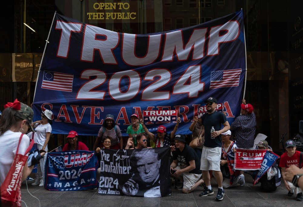 Donald Trump supporters outside Trump Tower in New York City on June 13, 2023 (Steve Sanchez Photos/ Shutterstock.com)