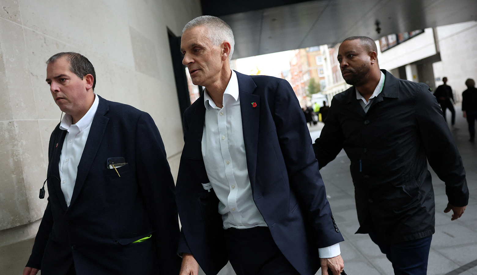 Outgoing Director General of the BBC Tim Davie arrives at BBC Broadcasting House after he and Chief Executive of BBC News Deborah Turness resigned following accusations of bias at the British broadcaster, including in the way it edited a speech by U.S. President Donald Trump, in London, Britain, November 11, 2025. REUTERS/Hannah McKay