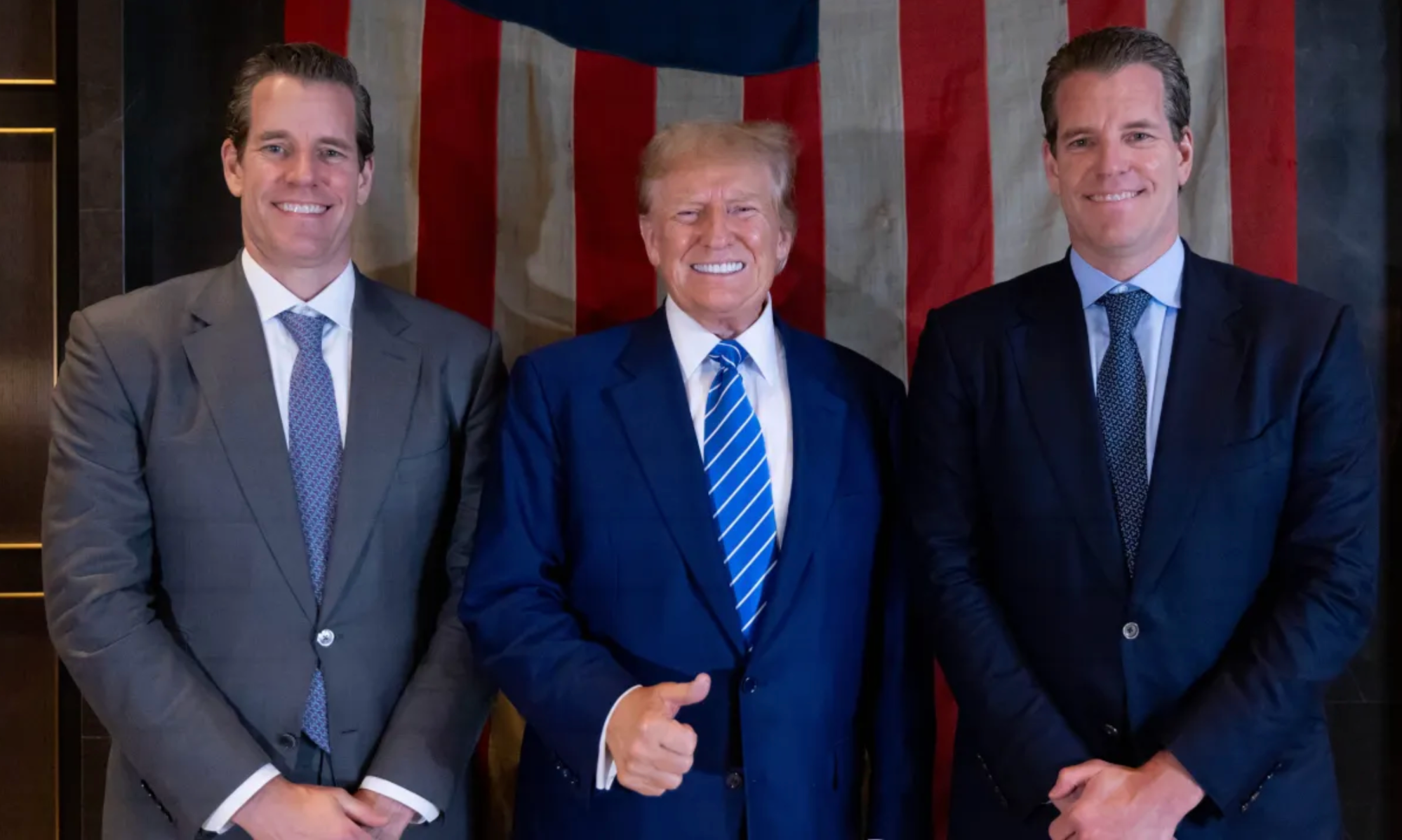 President Donald Trump posing with Cameron and Tyler Winklevoss on June 20, 2024 (Image: Tyler Winklevoss / X.com / @tyler)