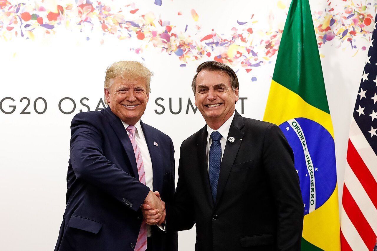U.S. President Donald Trump with then-Brazilian President Jair Bolsonaro in Osaka, Japan on June 28, 2019 (Alan Santo/Palácio do Planalto/Flickr)