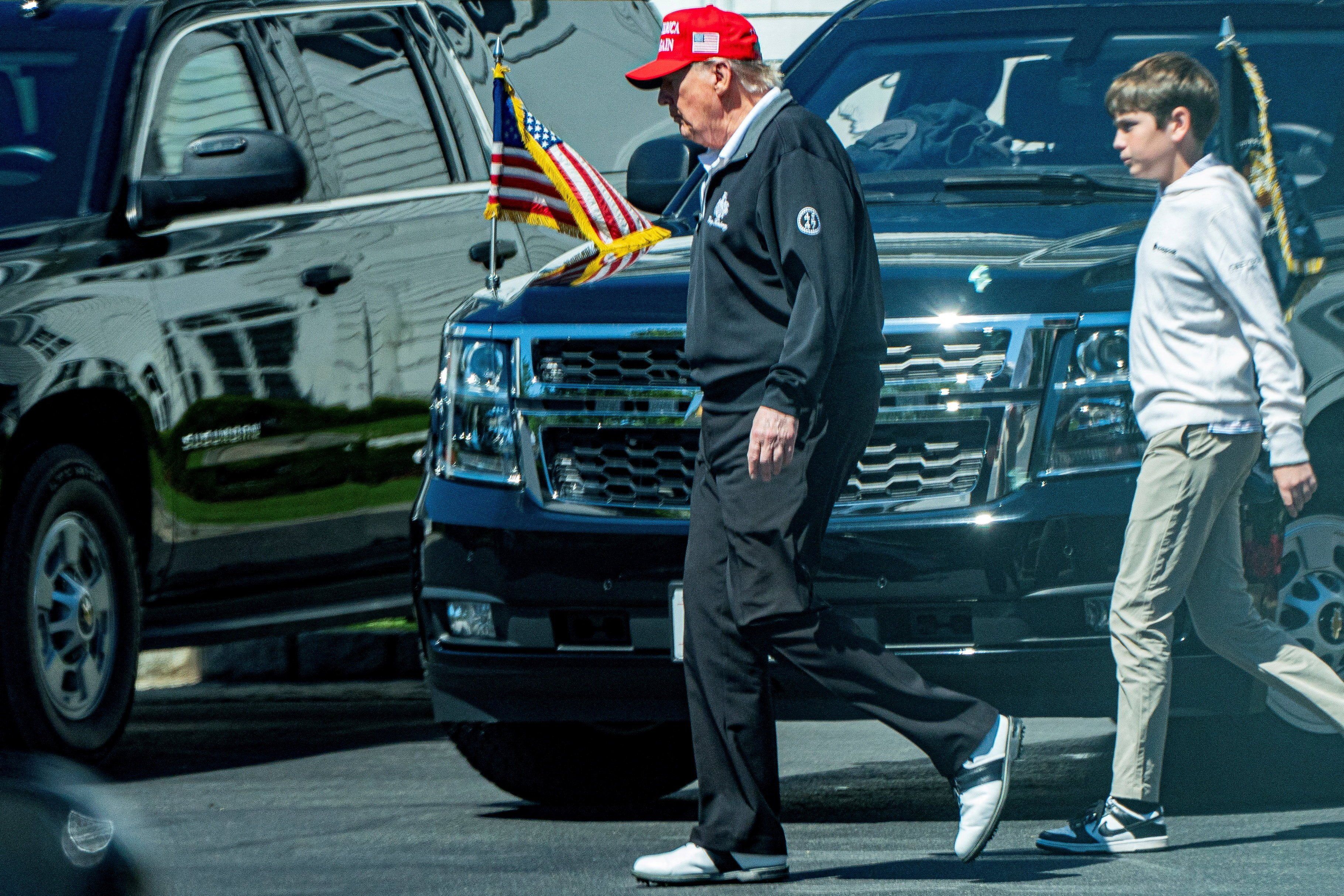 U.S. President Donald Trump walks on the grounds of the Trump National Golf Club in Sterling, Virginia, U.S., August 30, 2025. REUTERS/Nathan Howard