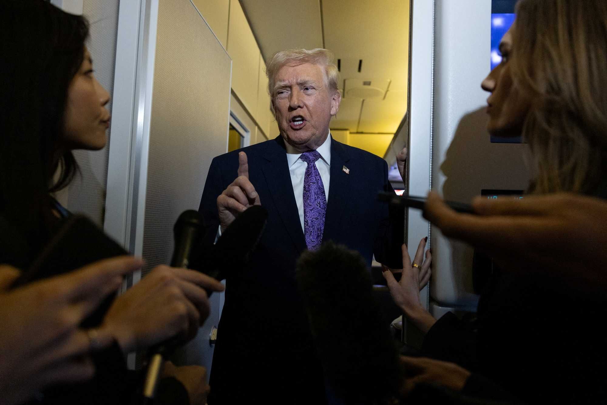 U.S. President Donald Trump speaks to reporters during travel to Washington, D.C., from Palm Beach International Airport, Florida, U.S., November 30, 2025. REUTERS/Anna Rose Layden