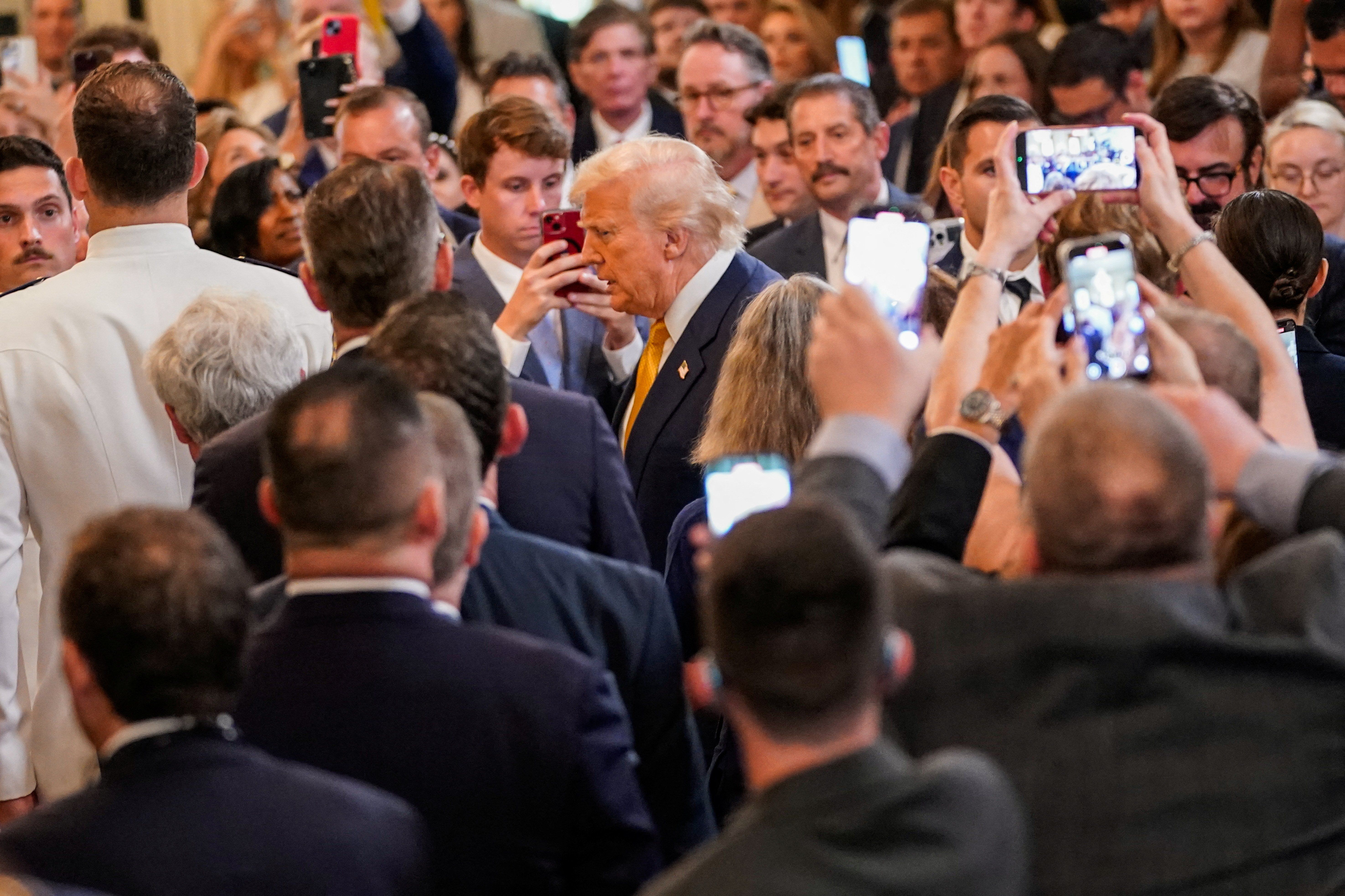 U.S President Donald Trump walks to the stage before signing the HALT Fentanyl Act, in the East Room at the White House in Washington, D.C., U.S., July 16, 2025. REUTERS/Nathan Howard