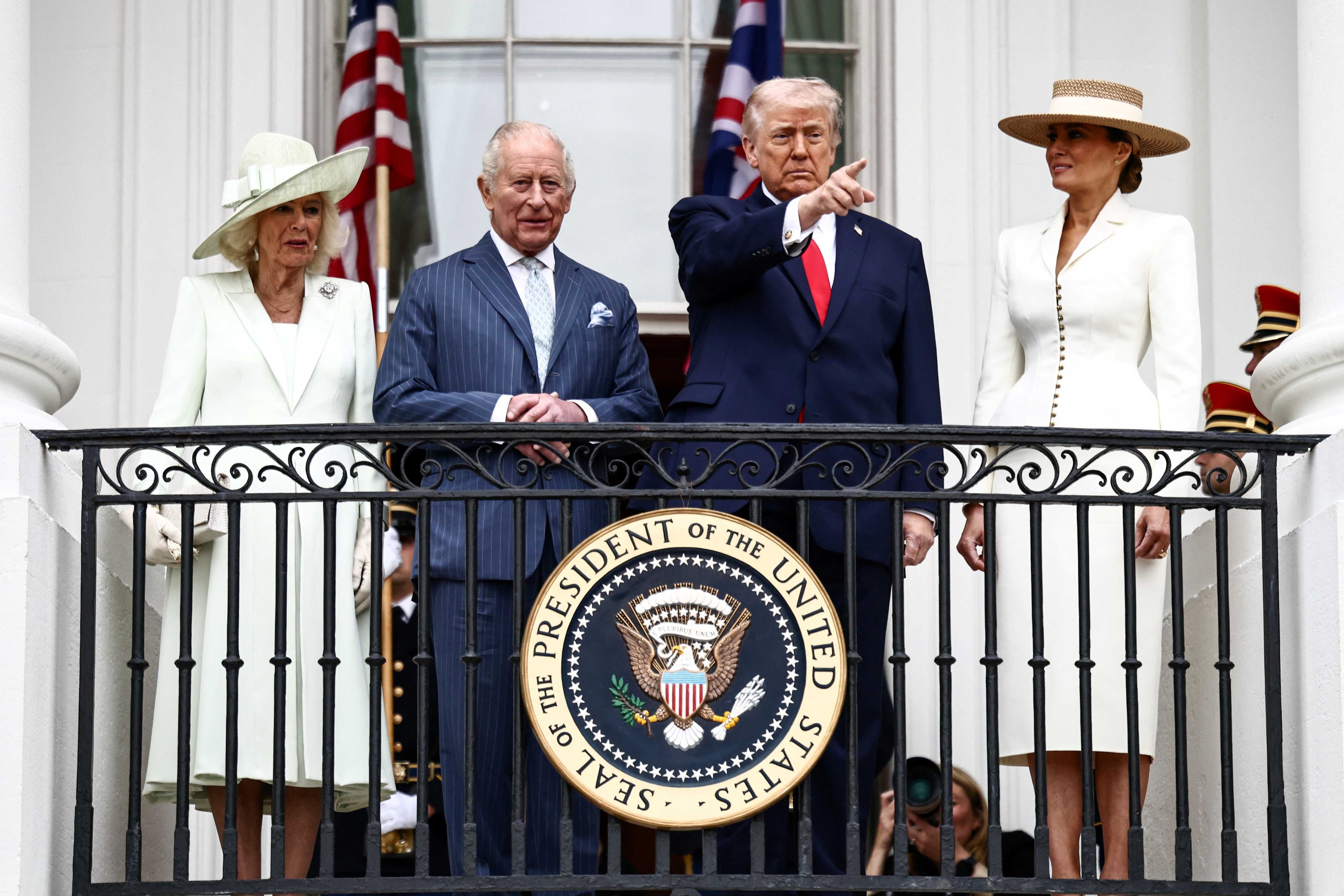 President Donald Trump, First Lady Melania Trump, Britain's King Charles III and Queen Camilla during an arrival ceremony at the White House in Washington, DC, on April 28, 2026. HENRY NICHOLLS/Pool via REUTERS