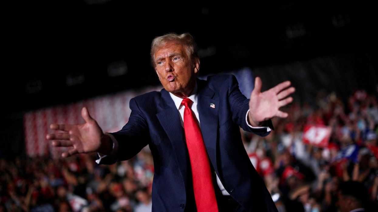 Republican presidential nominee and former U.S. President Donald Trump reacts during a rally in Greensboro, North Carolina, U.S. October 22, 2024. REUTERS/Carlos Barria