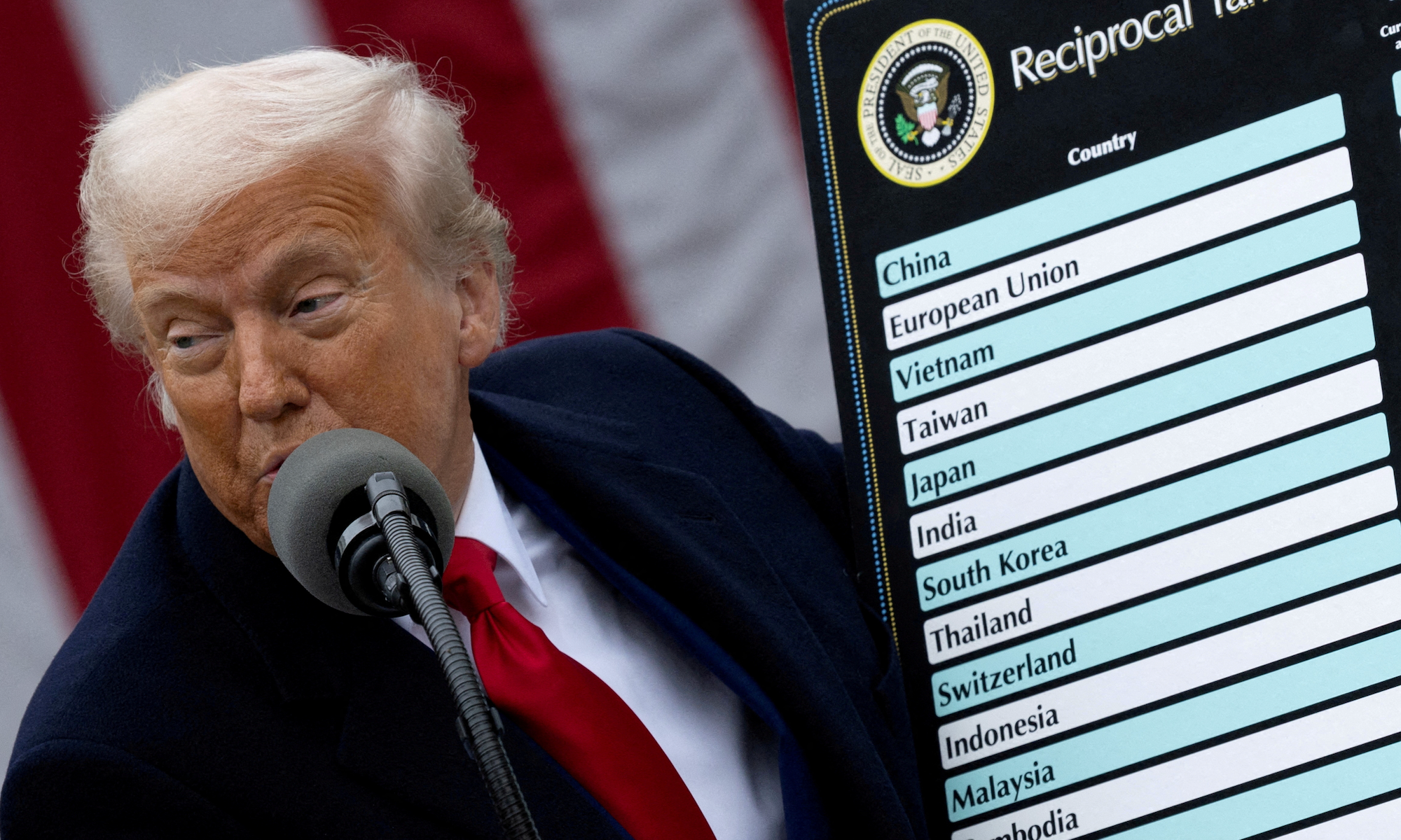 U.S. President Donald Trump delivers remarks on tariffs in the Rose Garden at the White House in Washington, D.C., U.S., April 2, 2025. REUTERS/Carlos Barria