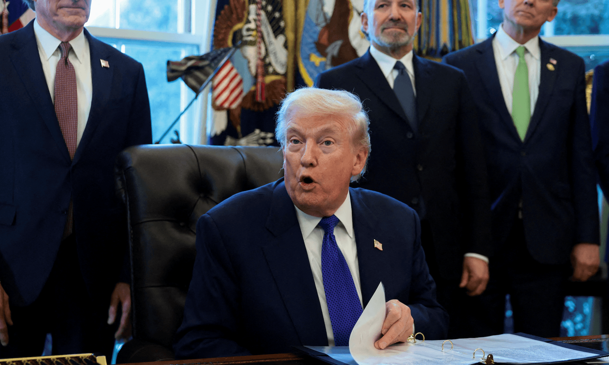 During a Tuesday bill-signing event in the Oval Office, Trump took questions from journalists in an impromptu press conference. At one point, CNN host Kaitlan Collins asked Trump about two of his associates – Commerce Secretary Howard Lutnick and Tesla CEO Elon Musk – being mentioned in the latest batch of Epstein files. Trump shrugged off those two names, saying "I'm sure they're fine. Otherwise there would have been major headlines."