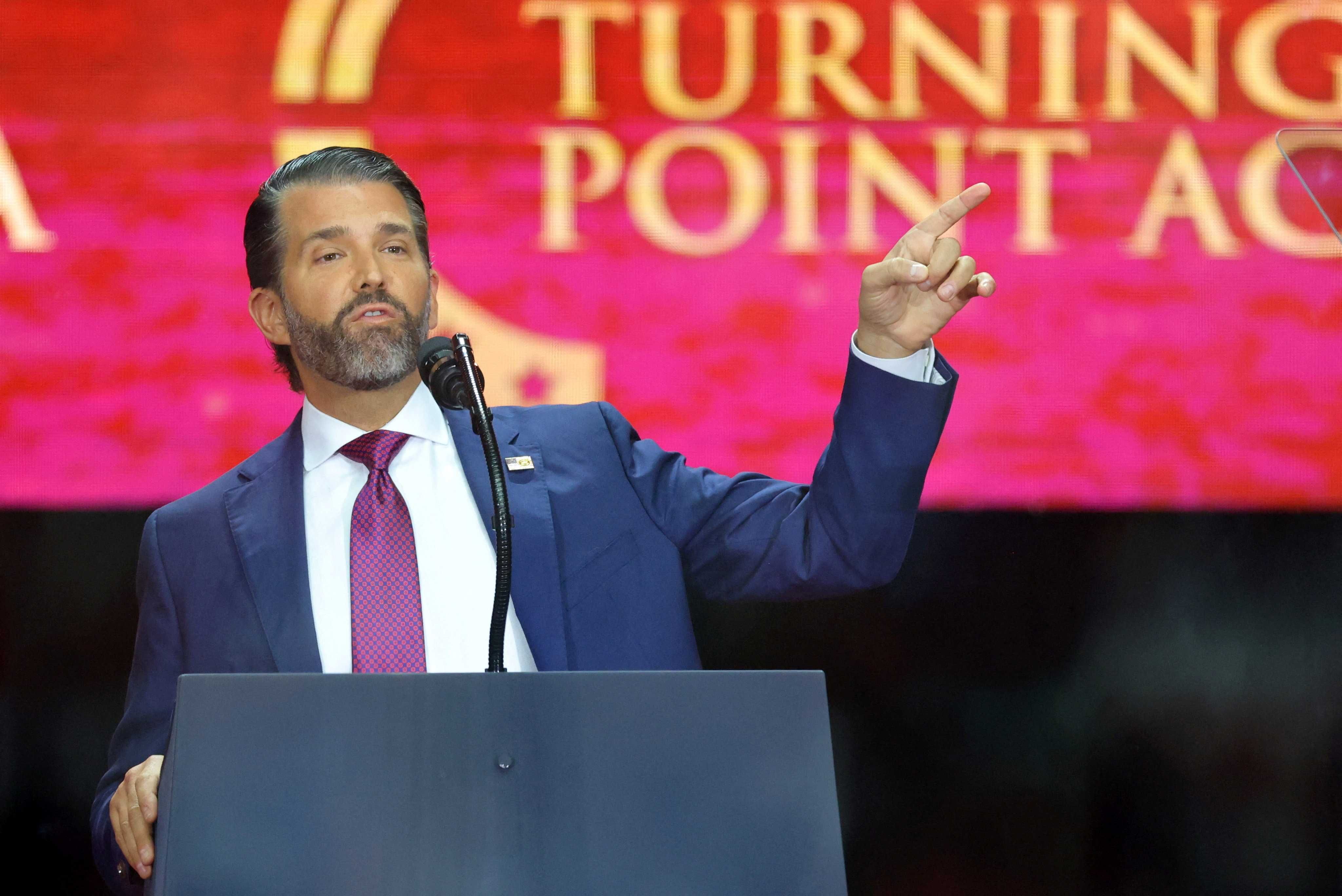 Trump Jr. gave a speech on Sunday at the final day of Turning Point USA's AmericaFest convention. In it, he warned attendees that Democrats, poised to make significant gains in the 2026 midterms as President Trump's popularity plummets, are aiming to undo what his father's "movement" has accomplished.