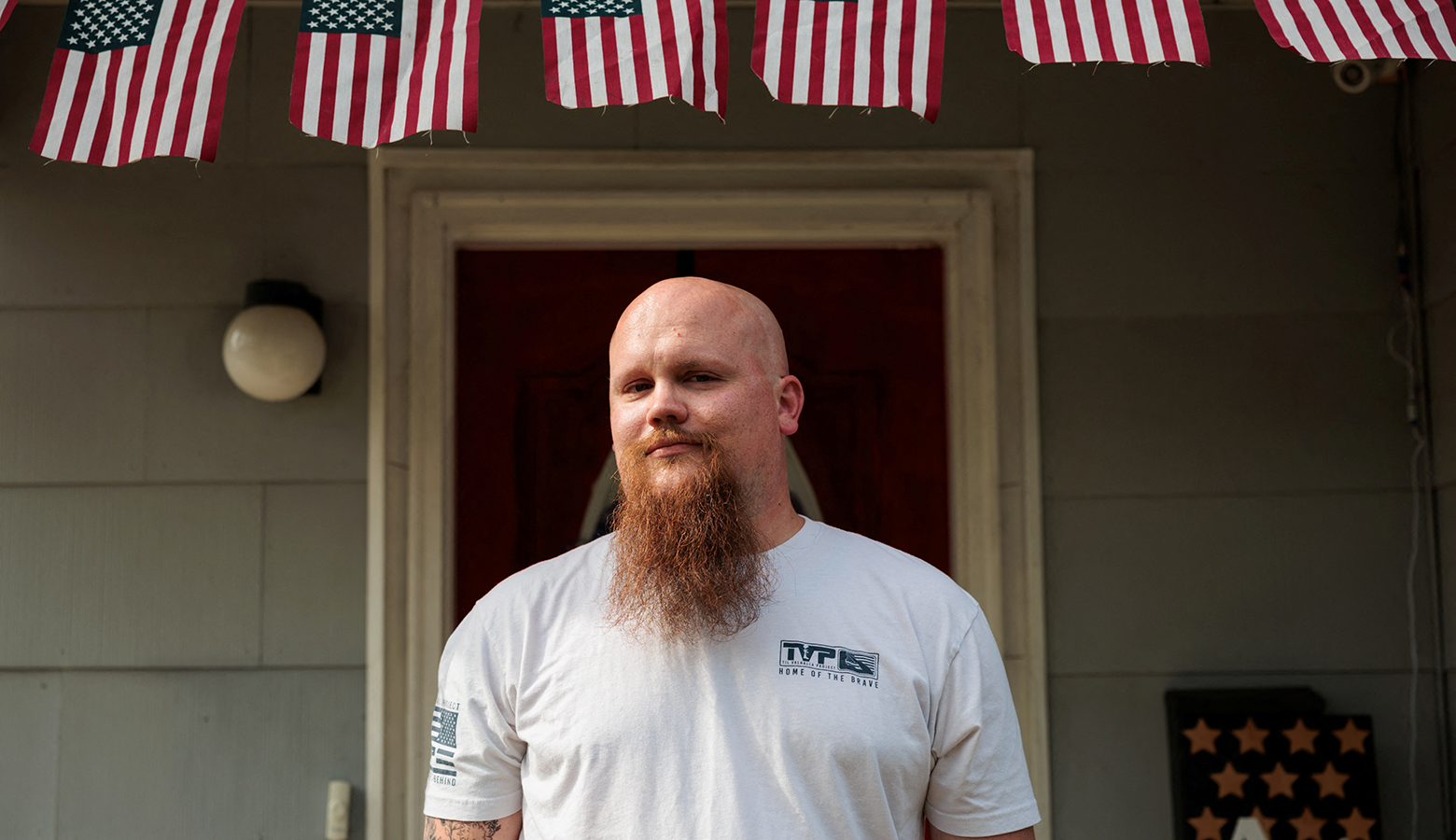 Brandon Neumeister poses for a portrait in Shamokin, Pennsylvania U.S. May 12, 2025. REUTERS/Hannah Beier