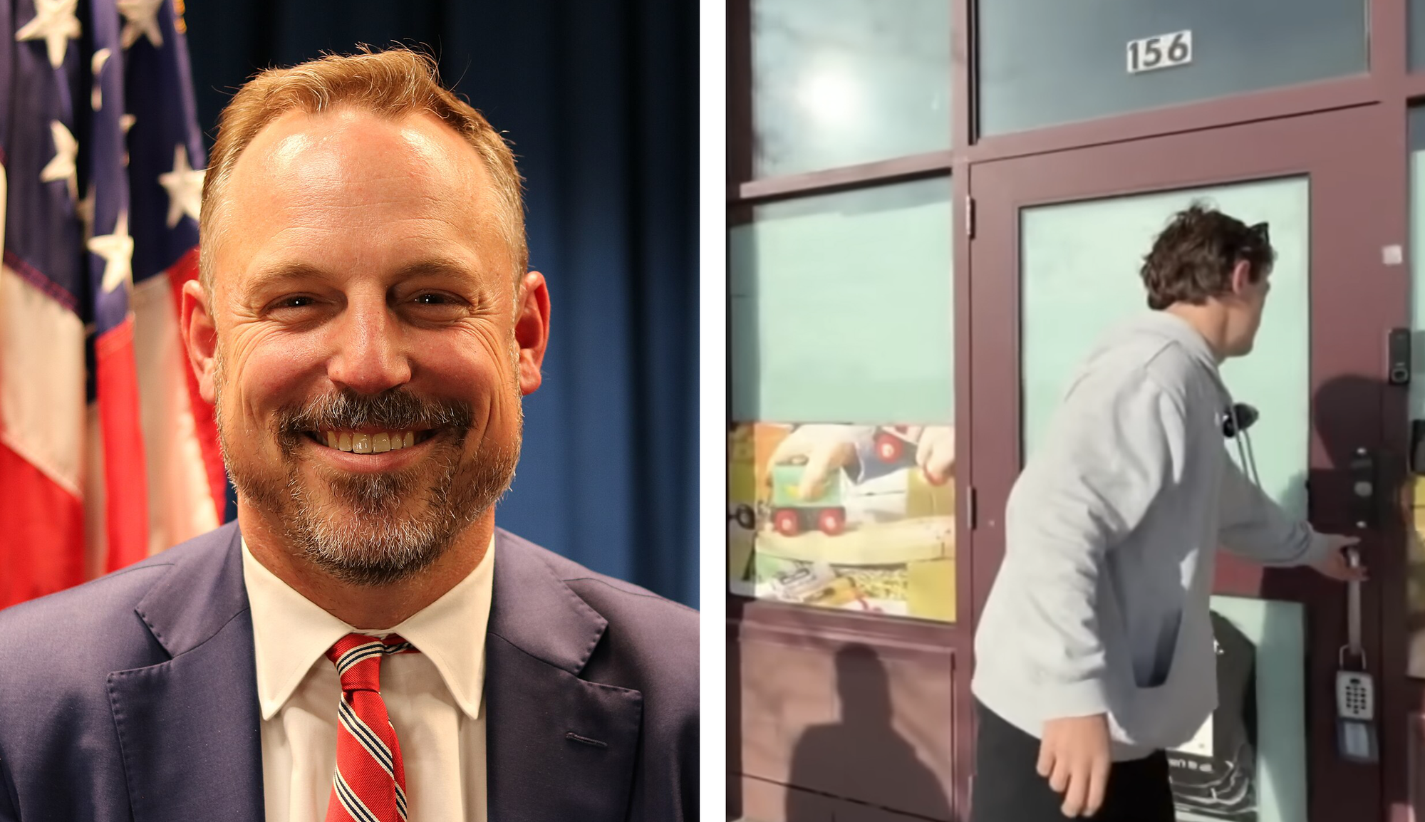 Former U.S. Attorney Joseph H. Thompson (Image: Wikipedia / Creative Commons) / Conservative influencer Nick Shirley (Image: Screengrab via WHAS 11 / YouTube)