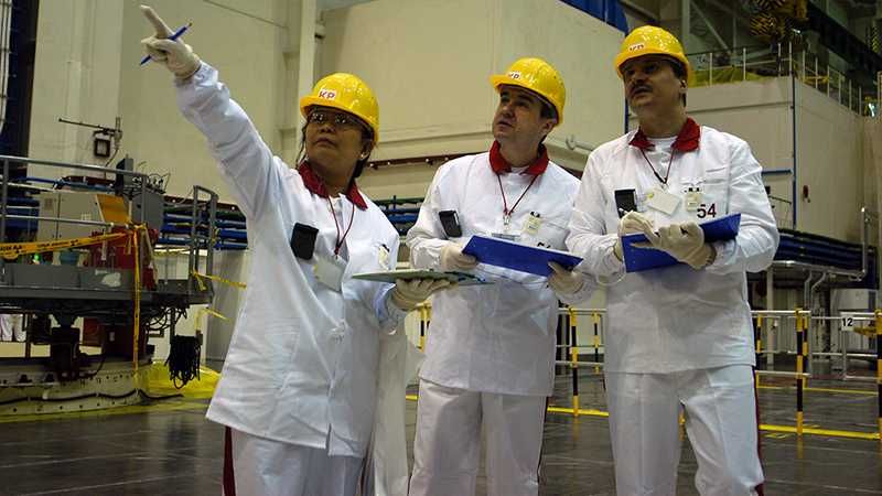 IAEA Safeguard inspector and trainer Perpetua Rodriguez briefs IAEA Safeguards trainees at the Reactor Hall of the Mochovce Nuclear Power Plant (NPP). 17-21 January 2005. (Photo: IAEA/Flickr)