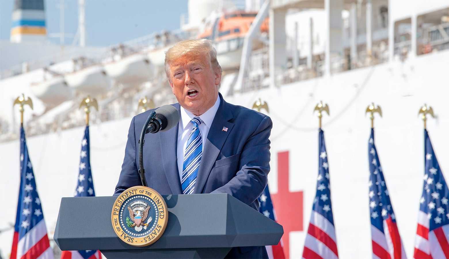 President Donald J. Trump delivers remarks at Naval Station Norfolk on March 28, 2020. US Navy Photo