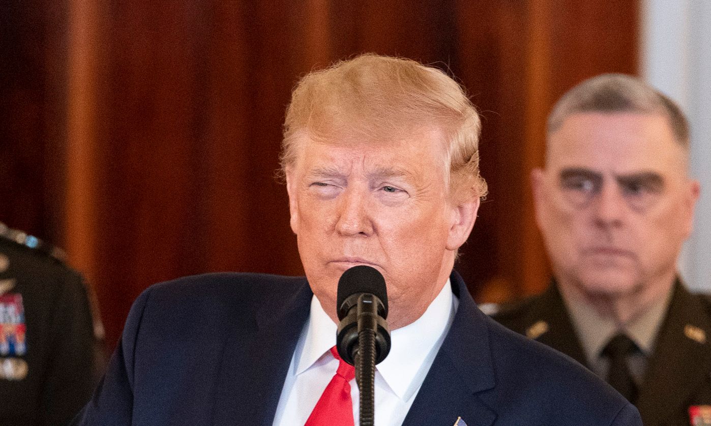 President Donald J. Trump, joined by Vice President Mike Pence, senior White House advisors and senior military personnel, delivers remarks during a national televised address Wednesday, Jan. 8, 2020, from the Cross Hall of the White House, responding to the retaliatory missile strikes against U.S. military and coalition forces in Iraq on Tuesday by the Islamic Republic of Iran.