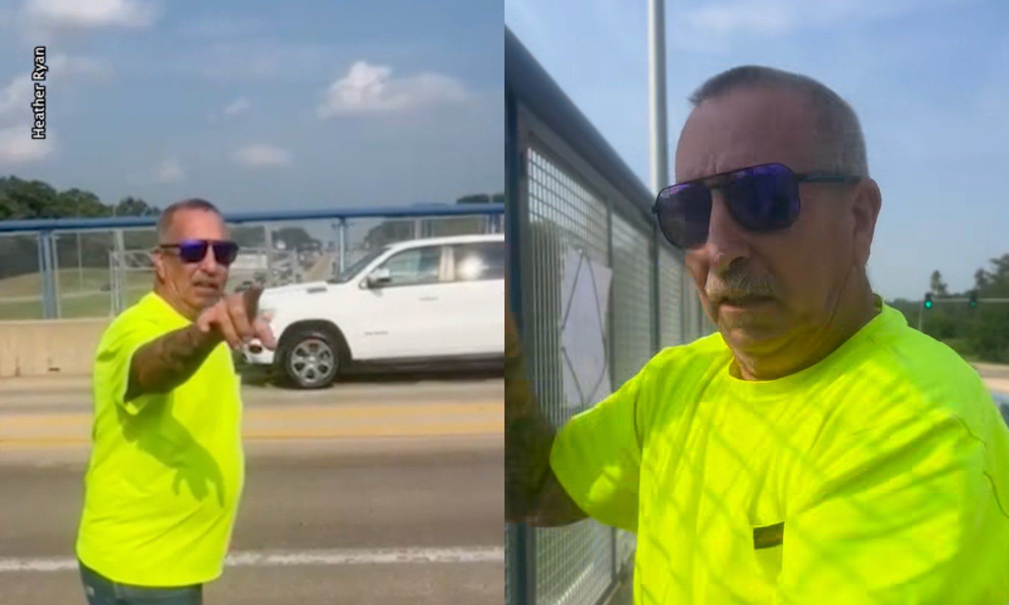 68 year-old Bradley Jay Nall on a bridge over I-235 in Des Moines, Iowa on August 12, 2025 (Image: Screengrab via Heather Ryan / Facebook)