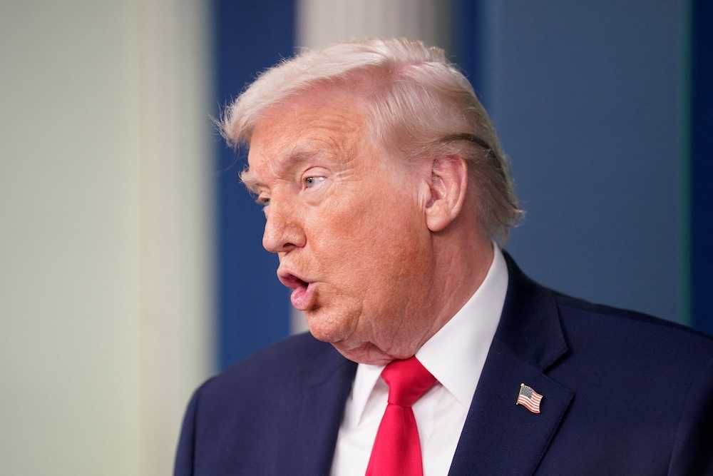U.S. President Donald Trump speaks during a press briefing at the White House, on the one-year mark into his second term in office, in Washington, D.C., U.S., January 20, 2026. REUTERS/Nathan Howard