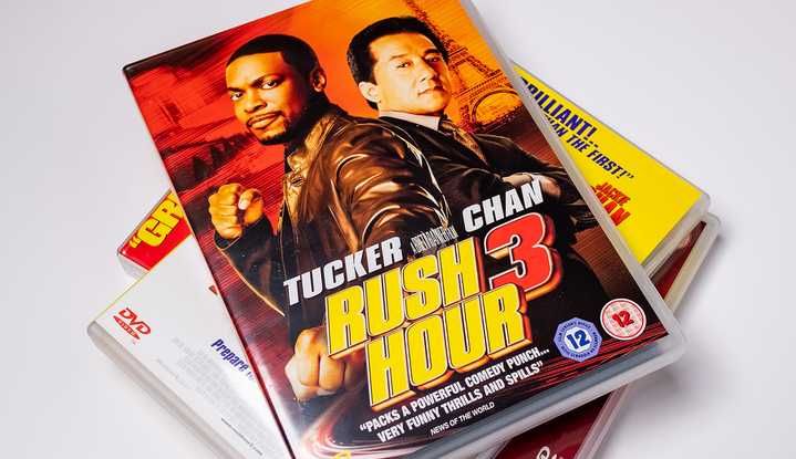Norwich, Norfolk, UK – February 2022. The Rush Hour Trilogy DVD box set isolated on a plain white background. A classic set featuring Jackie Chan and Chris Tucker