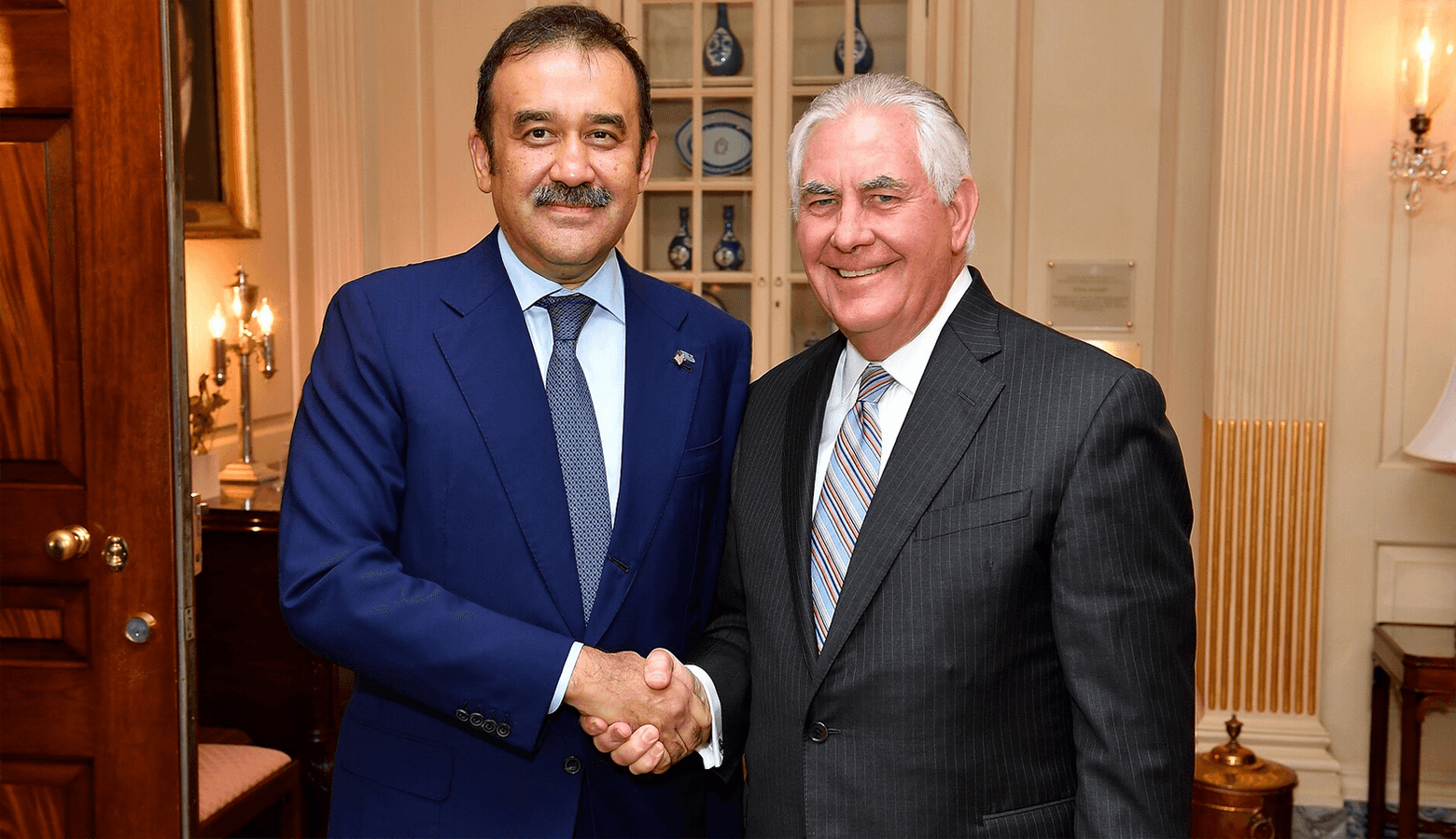 U.S. Secretary of State Rex Tillerson meets with Kazakh Chairman of the State Security Service Karim Masimov at the U.S. Department of State in Washington, D.C. on October 10, 2017. [State Department Photo/ Public Domain].