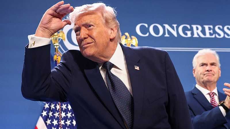 U.S. President Donald Trump looks from the stage after delivering remarks to members of the Republican Party, at Trump National Doral Miami in Miami, Florida, U.S., March 9, 2026. REUTERS/Kevin Lamarque